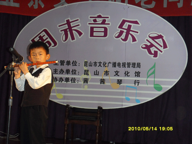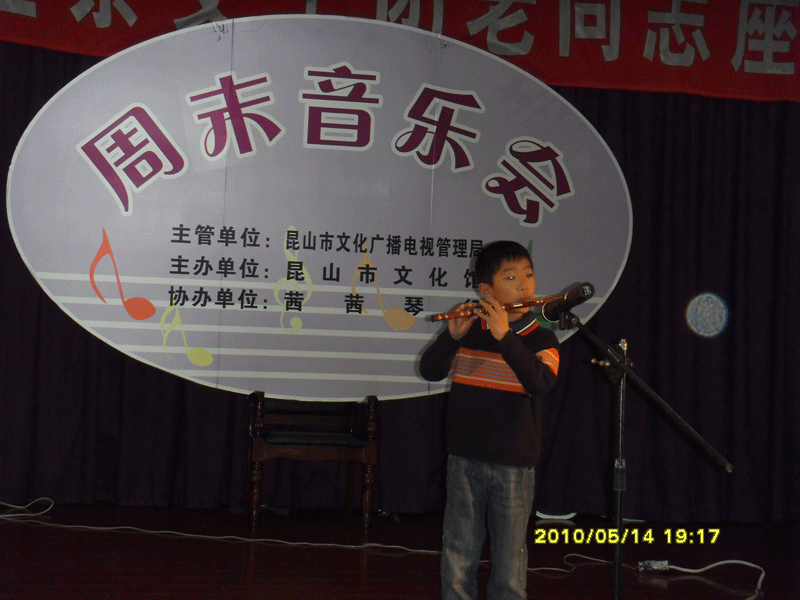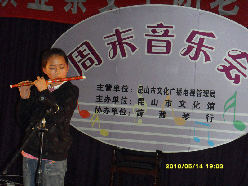 茜茜琴行第十七期周末演奏會(huì )--竹笛專(zhuān)場(chǎng)于2010年5月14日晚在昆山文化館舉行!(附演出照片)