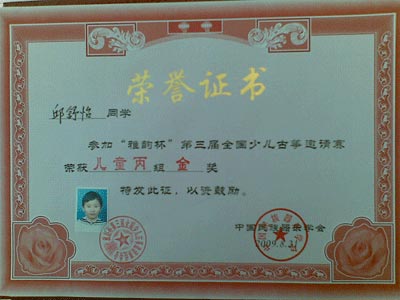 8月20--23日全國“雅韻杯”古箏大賽在南京舉行,昆山代表隊共有15名學(xué)員組成,參加5個(gè)級別的比賽,其中方新雨小朋友獲幼兒甲組金獎,邱舒怡小朋友獲兒童甲組金獎,朱靜蕓小朋友獲兒 童乙組金獎,再此向她們表示衷心的祝賀!